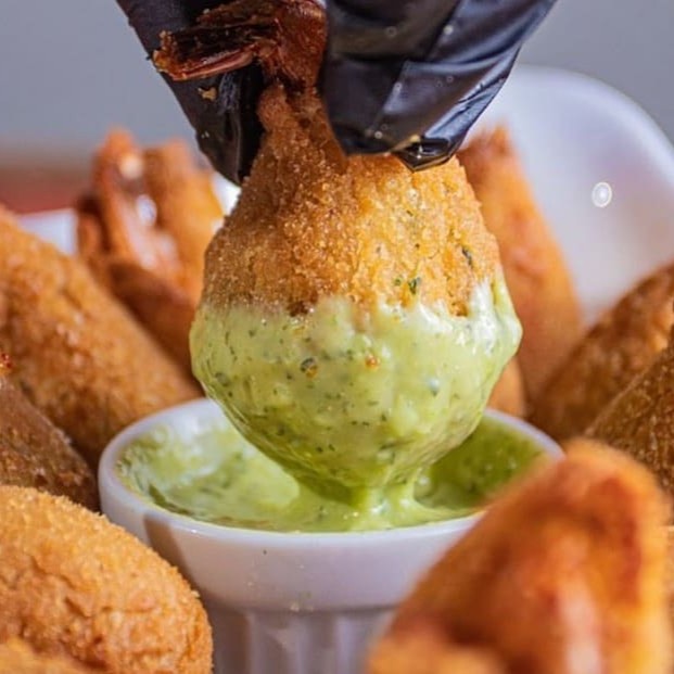 Coxinhas recheadas, acompanham molho da casa