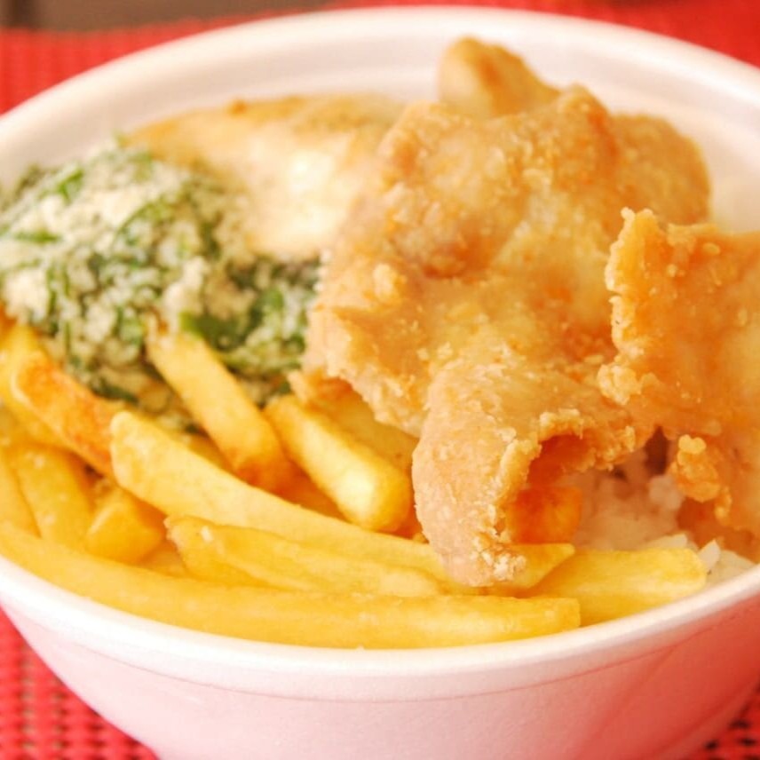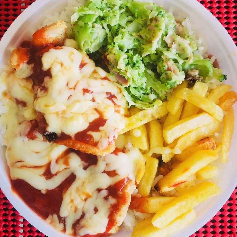 Feijão,arroz,Duas opções de mistura e Duas opções de acompanhamento.