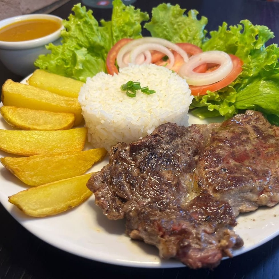 Essa deliciosa refeição vem acompanhada com nosso arroz soltinho e batata rústica, um delicioso bife de ancho, feijão e salada. Prezamos pela qualidade e os melhores sabores. Levamos até você com o delivery mais rápido da cidade. _ _#refeicoes #vegetariano #talharim #saladas #parmegianas #tabuadecarnes #coqueteis #caipirinha #cervejas