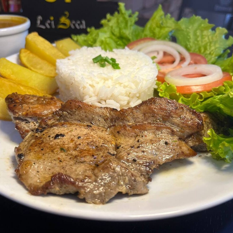 Essa deliciosa refeição vem acompanhada com nosso arroz soltinho e batata rústica, um delicioso bife de pernil, feijão e salada. Prezamos pela qualidade e os melhores sabores. Levamos até você com o delivery mais rápido da cidade. _ _#refeicoes #vegetariano #talharim #saladas #parmegianas #tabuadecarnes #coqueteis #caipirinha #cervejas