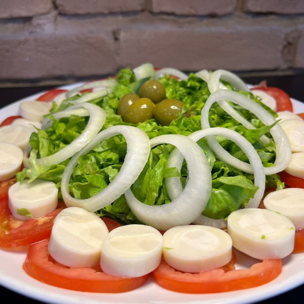 Deliciosamente feita com palmito, alface fresquinha, azeitona, tomate e cebola. Prezamos pela qualidade e os melhores sabores. Levamos até você com o delivery mais rápido da cidade. _ _#refeicoes #vegetariano #talharim #saladas #parmegianas #tabuadecarnes #coqueteis #caipirinha #cervejas