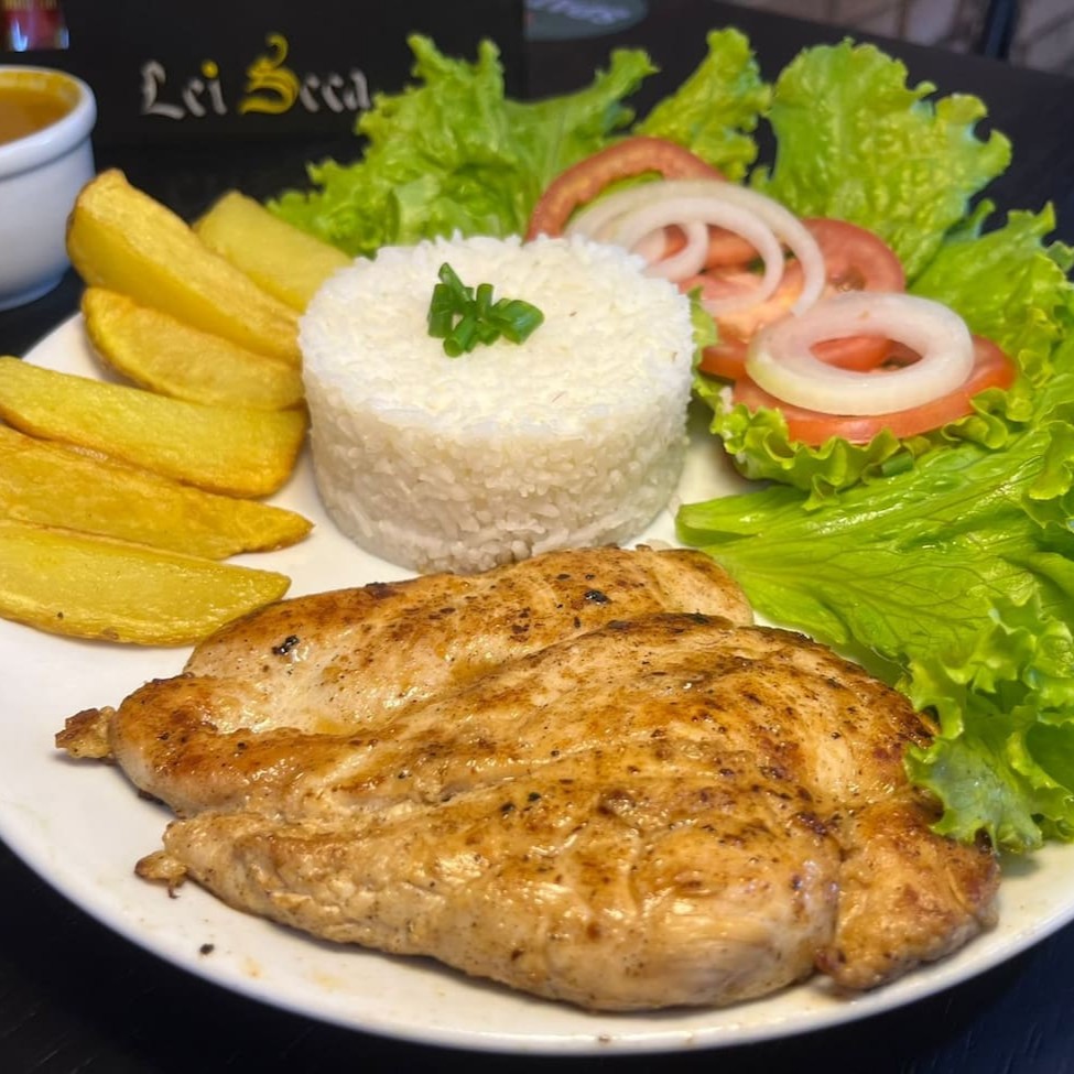 Essa deliciosa refeição vem acompanhada com nosso arroz soltinho e batata rústica, um delicioso bife de frango, feijão e salada. Prezamos pela qualidade e os melhores sabores. Levamos até você com o delivery mais rápido da cidade. _ _#refeicoes #vegetariano #talharim #saladas #parmegianas #tabuadecarnes #coqueteis #caipirinha #cervejas