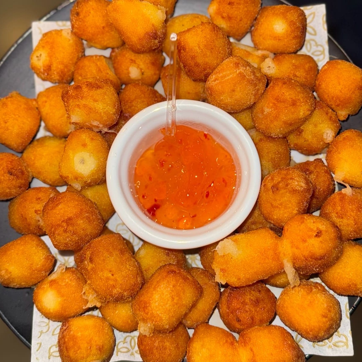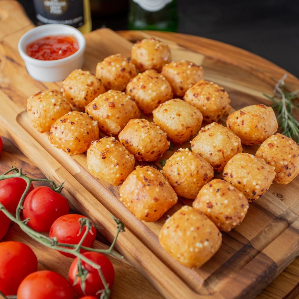 Dadinho de tapioca com recheio de queijo 400g. Acompanha geleia de pimenta.