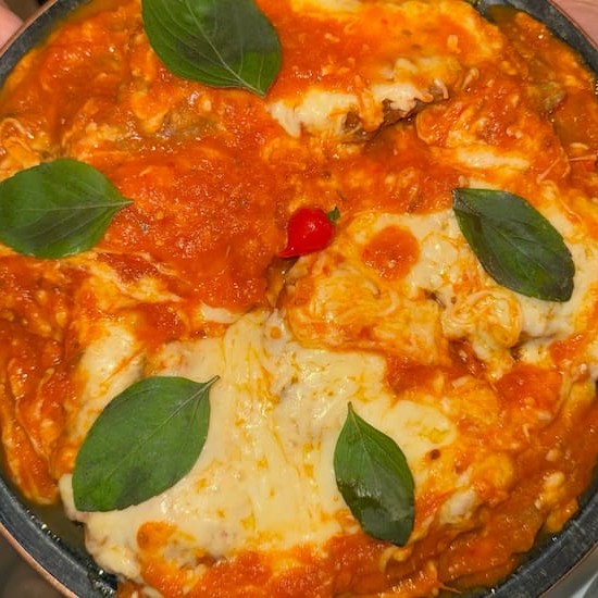 Deliciosa parmegiana a milanesa de file mignon acompanha fritas 700g Serve 2 pessoas (700g)