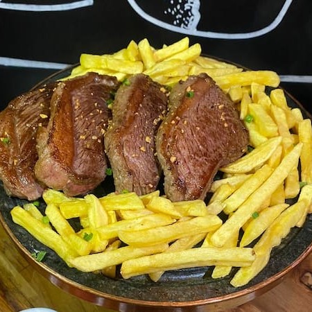 Maravilhosa picanha uruguaia acompanha fritas, farofa e vinagrete 700g