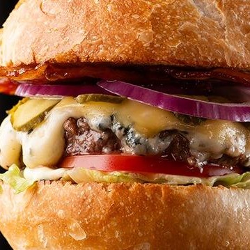 Burguer, Bacon, Queijo Prato, Gorgonzola, Alface Americana, Tomate, Cebola Roxa, Picles E Maionese Especial