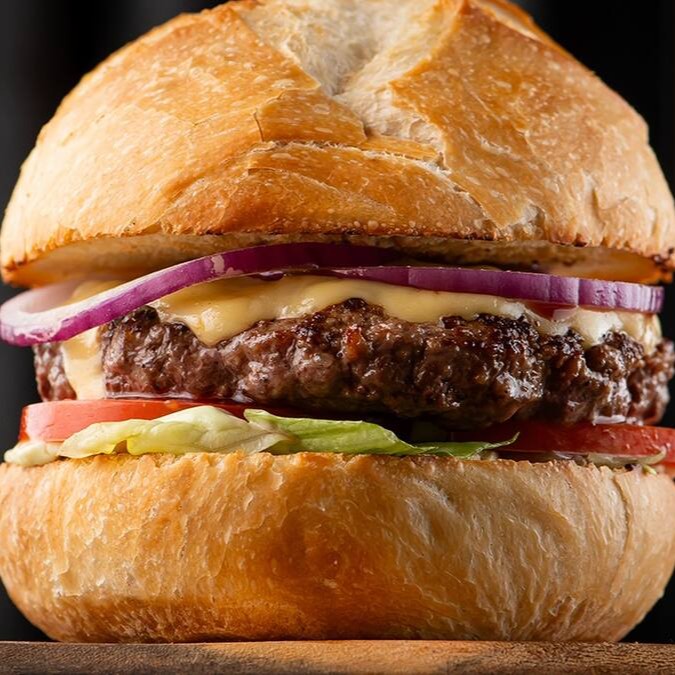 Burguer, Queijo Prato, Cebola Roxa, Alface Americana, Tomate E Maionese Especial