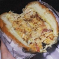 Pão brioche, smash de frango desfiado, queijo tipo catupiry da casa, queijo mussarela, bacon, tomate, milho e maionese da casa
