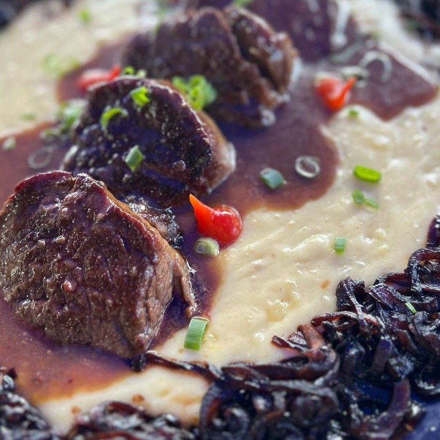 Medalhões de filé mignon,aligot de batata, molho rôti, cebola caramelizada e arroz branco. Serve 2 pessoas. Atenção não alteramos itens. os pratos em viagem não mantém a mesma qualidade e crocância no restaurante * imagens ilustrativas