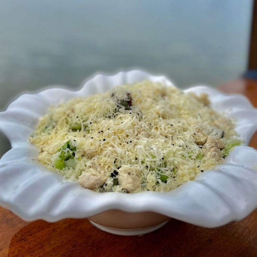 Alface americana, cubos de frango, parmesão, croutons e molho caeser. Atenção não alteramos itens. os pratos em viagem não mantém a mesma qualidade e crocância no restaurante * imagens ilustrativas