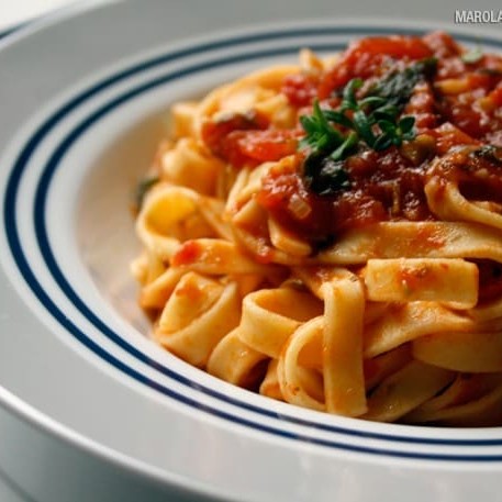Massa artesanal produzida na casa acompanhado de molho bolonhesa ou aglio e olio Atenção não alteramos itens. os pratos em viagem não mantém a mesma qualidade e crocância no restaurante * imagens ilustrativas