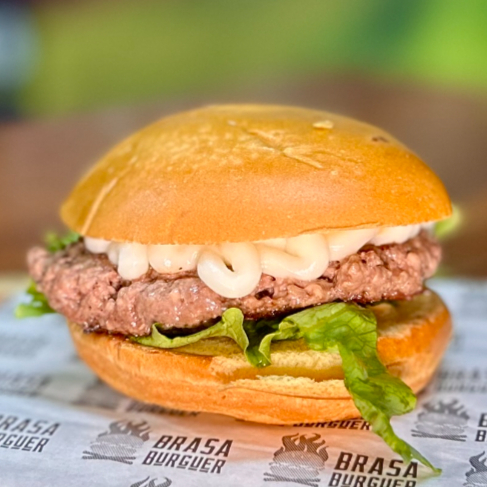 Burger artesanal de costela, queijo cremoso, alface, cebola roxa e molho especial.