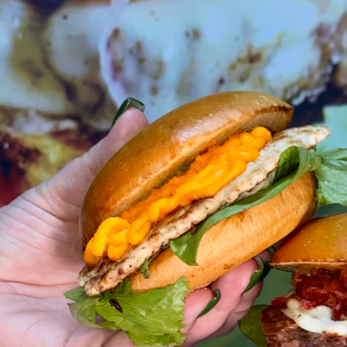 Burger artesanal, cheddar cremoso, cebola roxa e molho especial da casa