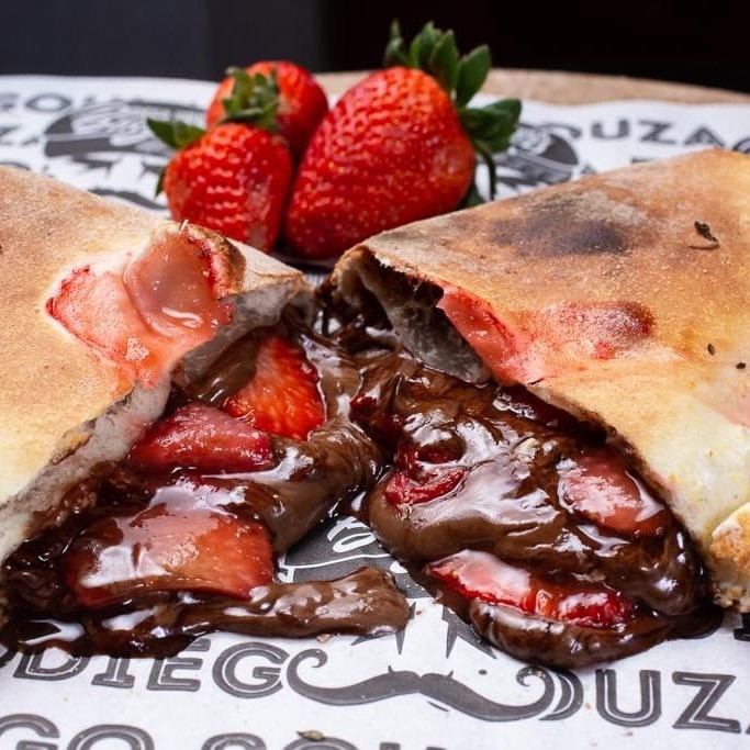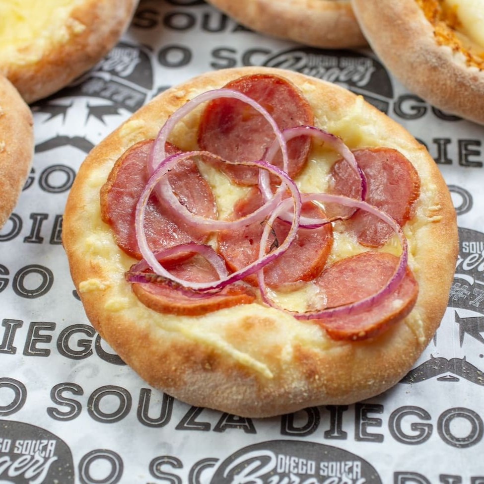 Diferente e delicioso! Esse pastel é feito com os melhores ingredientes: calabresa ralada, queijo mussarela, molho de tomate e uma massa crocante e sequinha. Pastel de 20x10cm, recheado de ponta a ponta, preparado e frito na hora.
