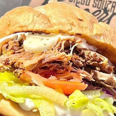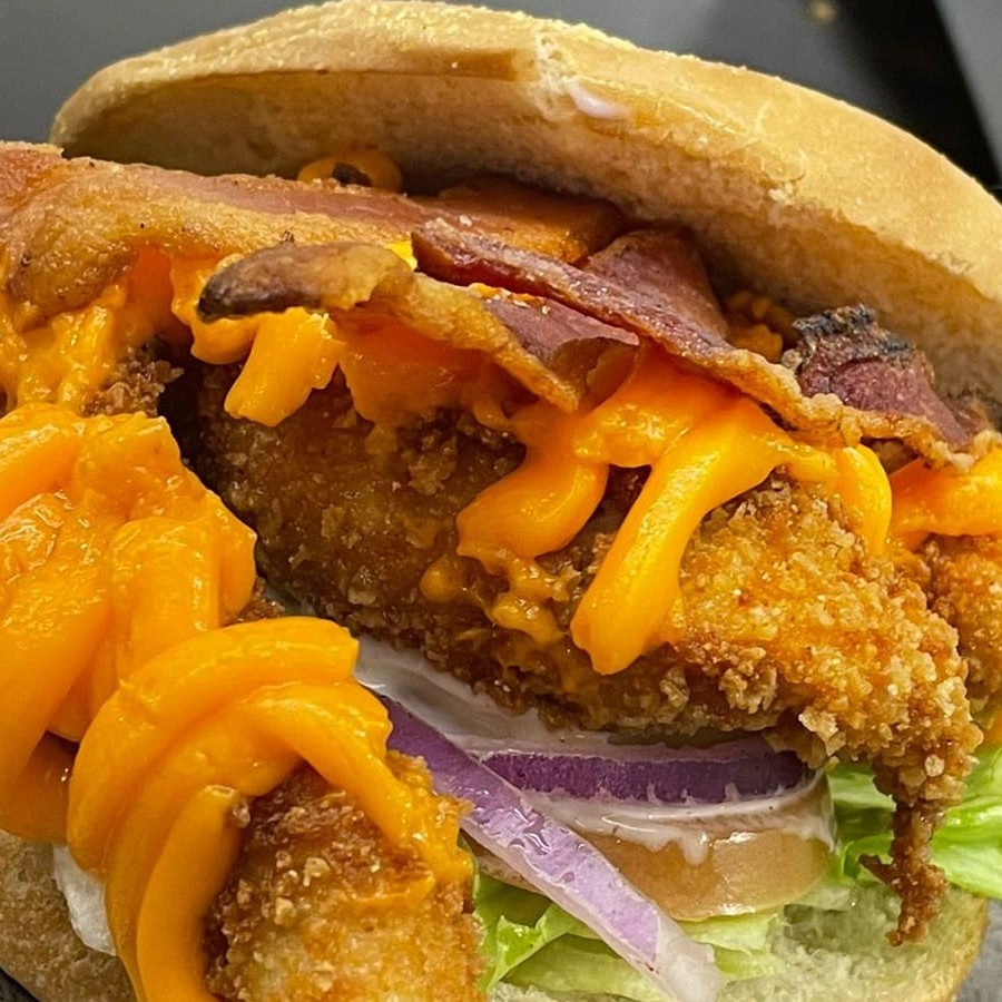 Pão tradicional ou defumado, carne bovina, cheddar, bacon e maionese da casa.