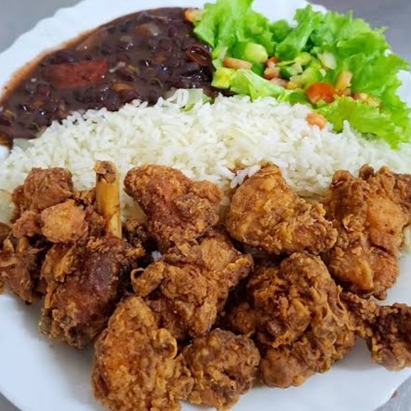 arroz, feijão e tulipa de frango frita.