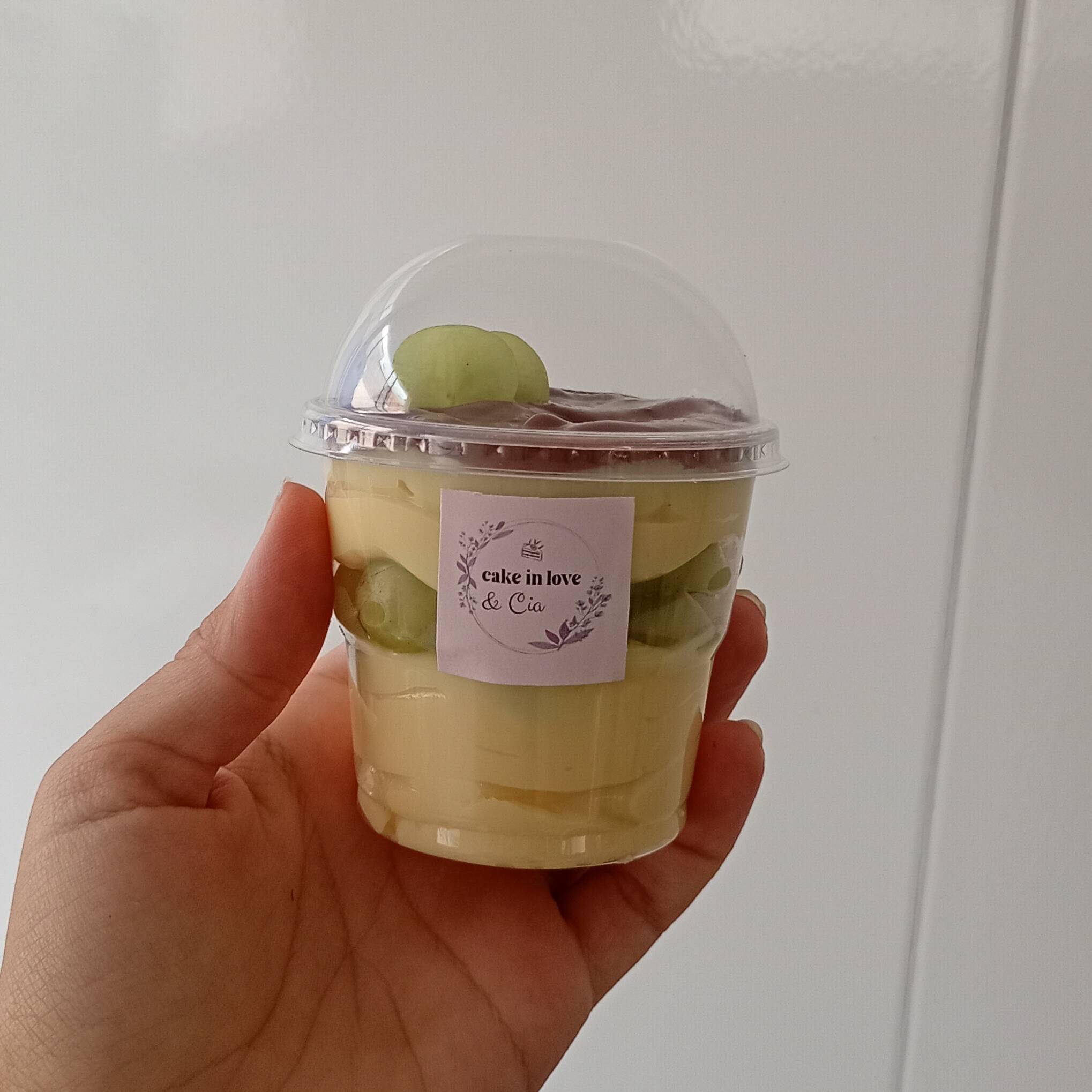 Creme de ninho com uvas e cobertura de brigadeiro intenso