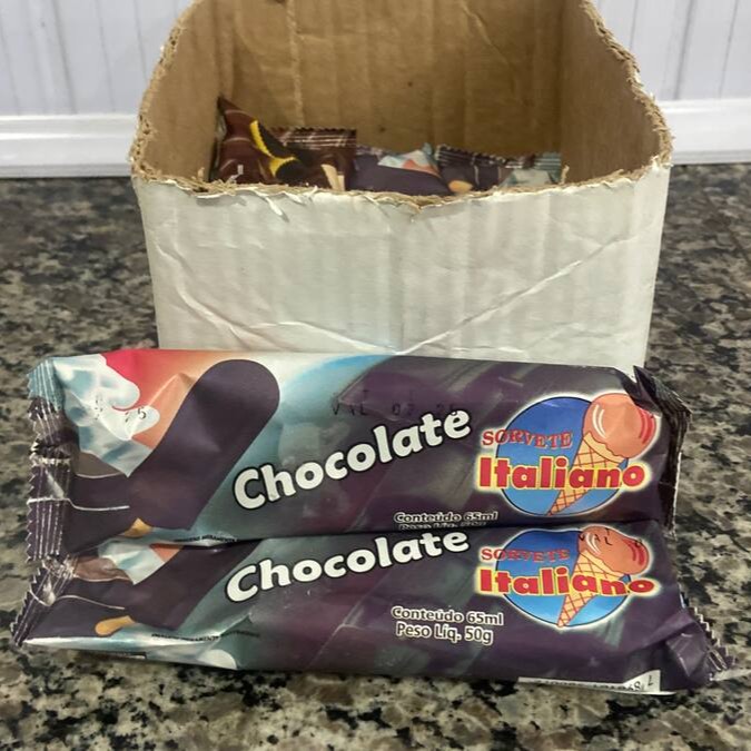 Picolé tradicional com casca de chocolate por fora creme por dentro