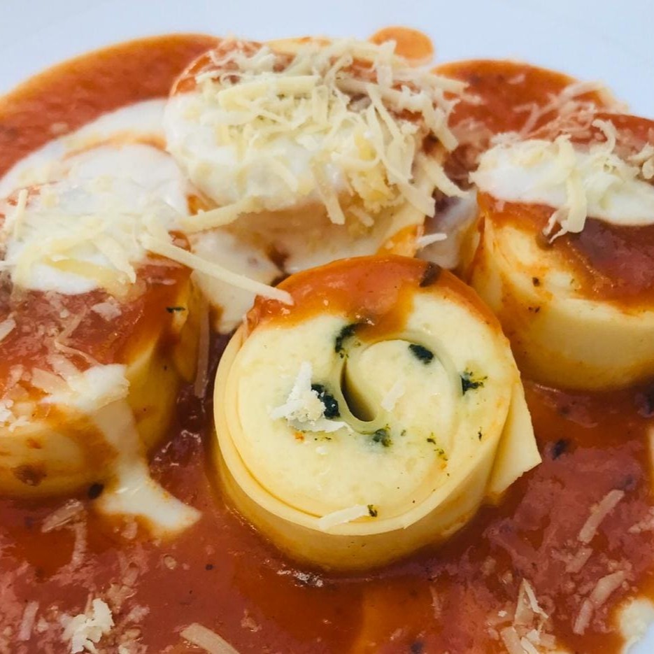 Nosso tradicional Raviolli, é a representação máxima da simplicidade aliada à perfeição. Este prato é a definição de 'o simples bem feito'. Cada raviolli é preparado pela nossa equipe, que se dedicam a criar uma experiência culinária inigualável. O sabor é autêntico, proporcionando um deleite para todos os apreciadores de uma boa massa. O prato é não apenas uma refeição, mas uma verdadeira obra de arte gastronômica.