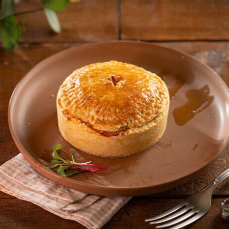 Torta da casa com massa artesanal, frango desfiado e requeijão cremoso.