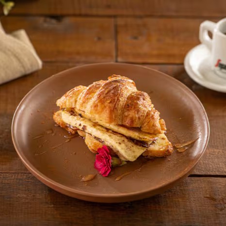 Croissant com doce de leite da casa e banana.