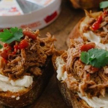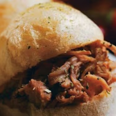 Pão de queijo da casa recheado com lagarto desfiado, cream cheese e rúcula. Você pode pedir para retirar a rúcula, se preferir.