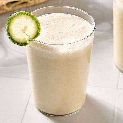 Suco cremoso feito com limão e leite condensado.