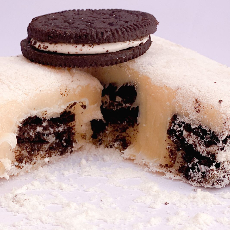 Picolé de Oreo recheado de nutella coberto de chocolate branco com oreo