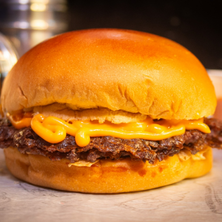Hamburguer artesanal, mussarela e cheddar, feito no pão brioche.(foto meramente ilustrativa)