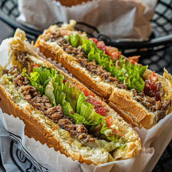 Hamburguer Artesanal, muçarela, alface e tomate. Feito no pão de Brioche.