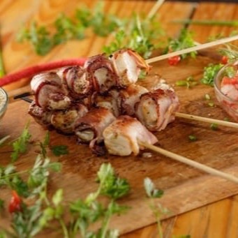 São 5 medalhões caseiros deliciosos: - 2 Medalhões de Frango com Bacon - 1 Medalhão de Vaca - 1 Medalhão de Nozinho com Bacon - 1 Medalhão de Romeu e Julieta (queijo coalho com goiabada enrolado no bacon especial) Inclui sua opcão de bebida grátis! É só escolher uma!