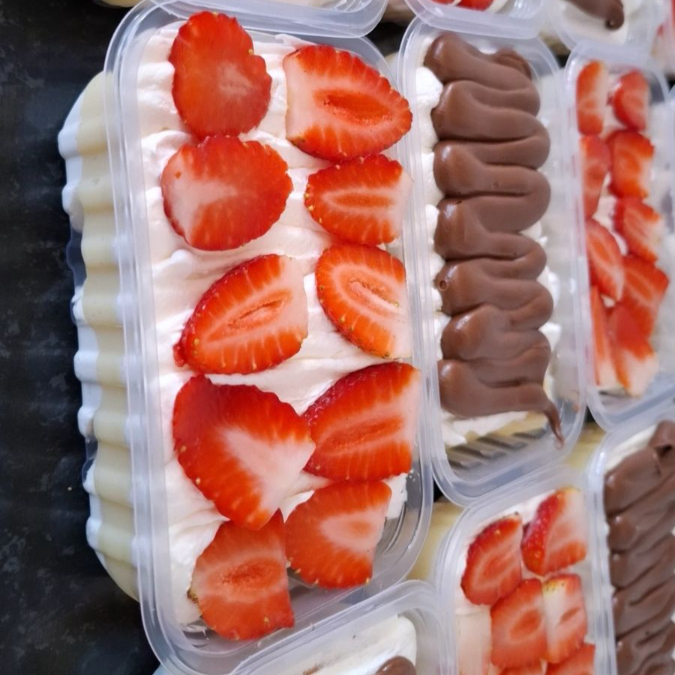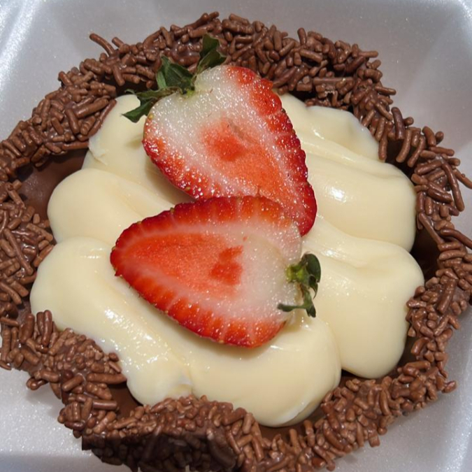 Mousses: morango,maracujá,Ninho. Recheios: brigadeiro,Ninho Complementos: leite em pó,paçoca, gotas de chocolate,leite condensado,granulado,Confete,amendoim,CHOCOBAALFruta:morango e banana