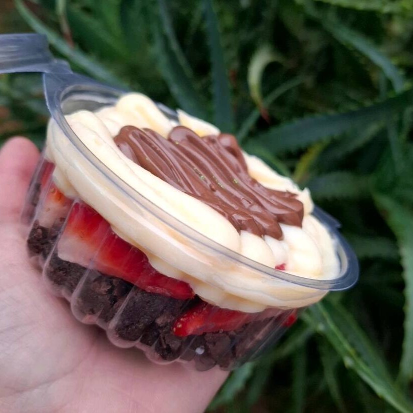 Mousses: morango,maracujá,Ninho. Recheios: brigadeiro,Ninho Complementos: leite em pó,paçoca, gotas de chocolate,leite condensado,granulado,Confete,amendoim,CHOCOBAALFruta:morango e banana