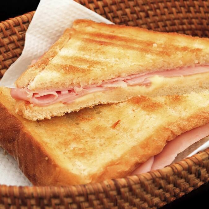 Delicie-se com o misto quente, uma combinação irresistível de presunto e queijo derretido em pão crocante.