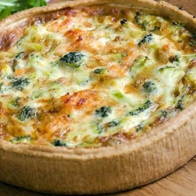 Quiche de brócolis com bacon, unindo o sabor saudável do brócolis com a crocância do bacon.