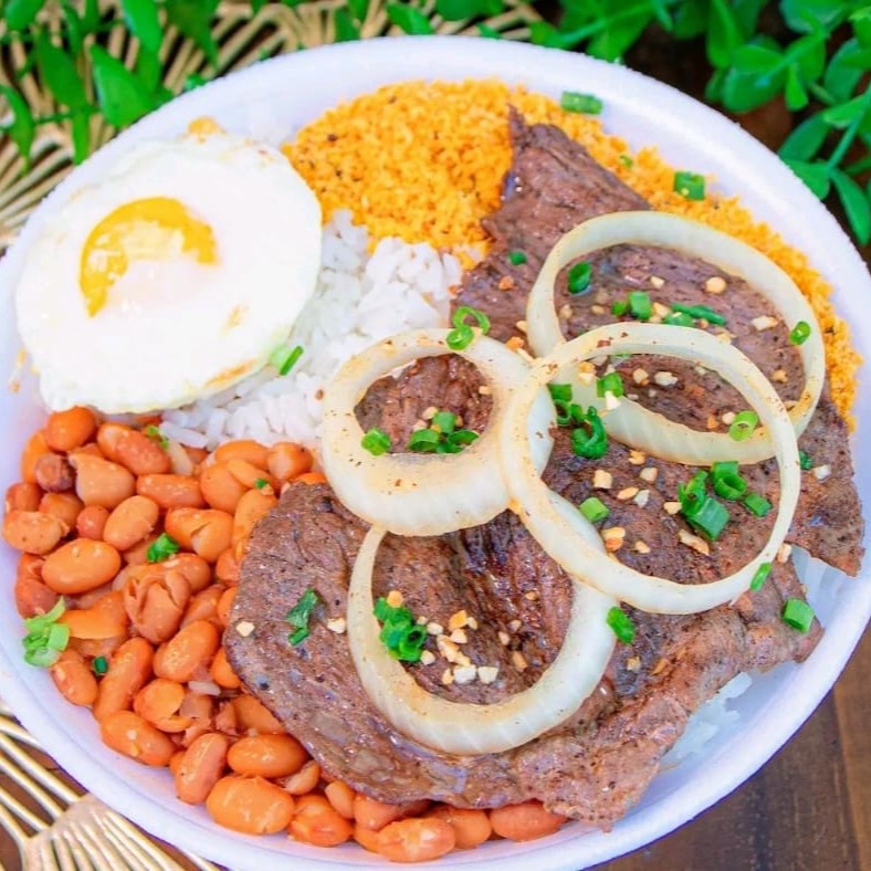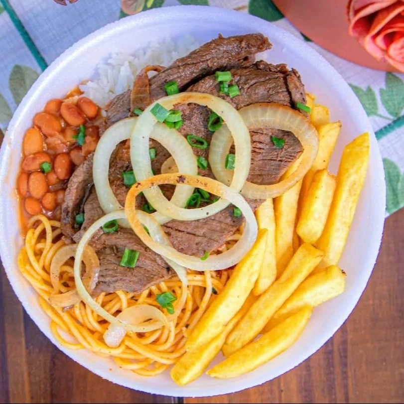 Acompanha arroz branco, feijão vermelho com caldo e 2 guarnições da sua preferência!