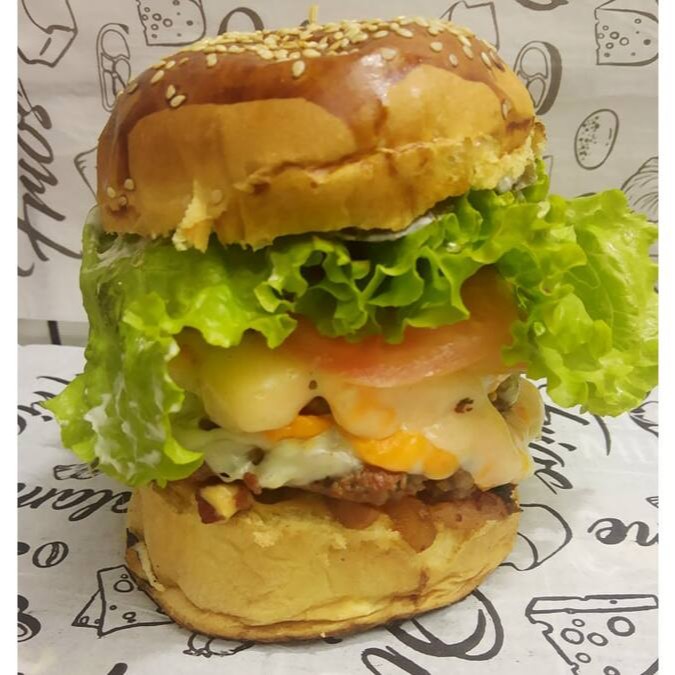 Pão brioche, maionese caseira da casa, blend bovino 100g, bacon, cream chese, alface, tomate.