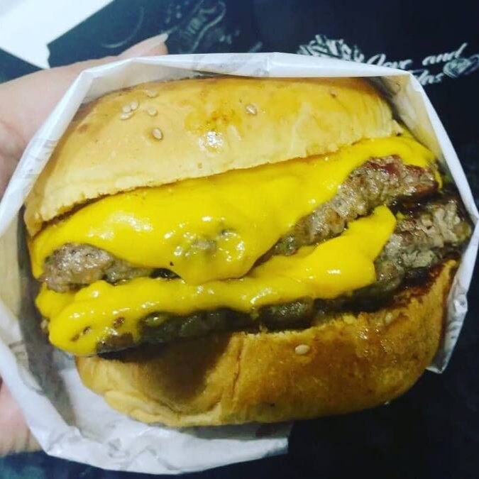 2 x bacon gourmet (pão brioche, carne artesanal 100g, bacon, cheddar) acompanha