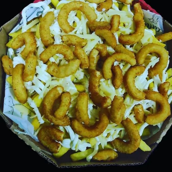 Filé de Frango Ovo Bacon Presunto Mussarela Alface Tomate Milho Batata Palha Catupiry ou Cheddar