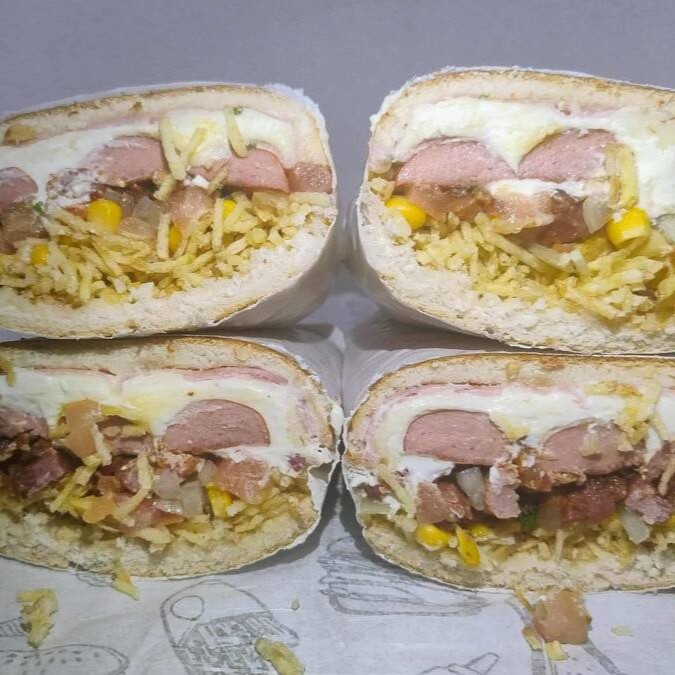 Pão de Hamburguer, Hamburguer Artesanal salsicha frango presunto mussarela ovo bacon alface tomate milho batata palha cheddar e Catupiry