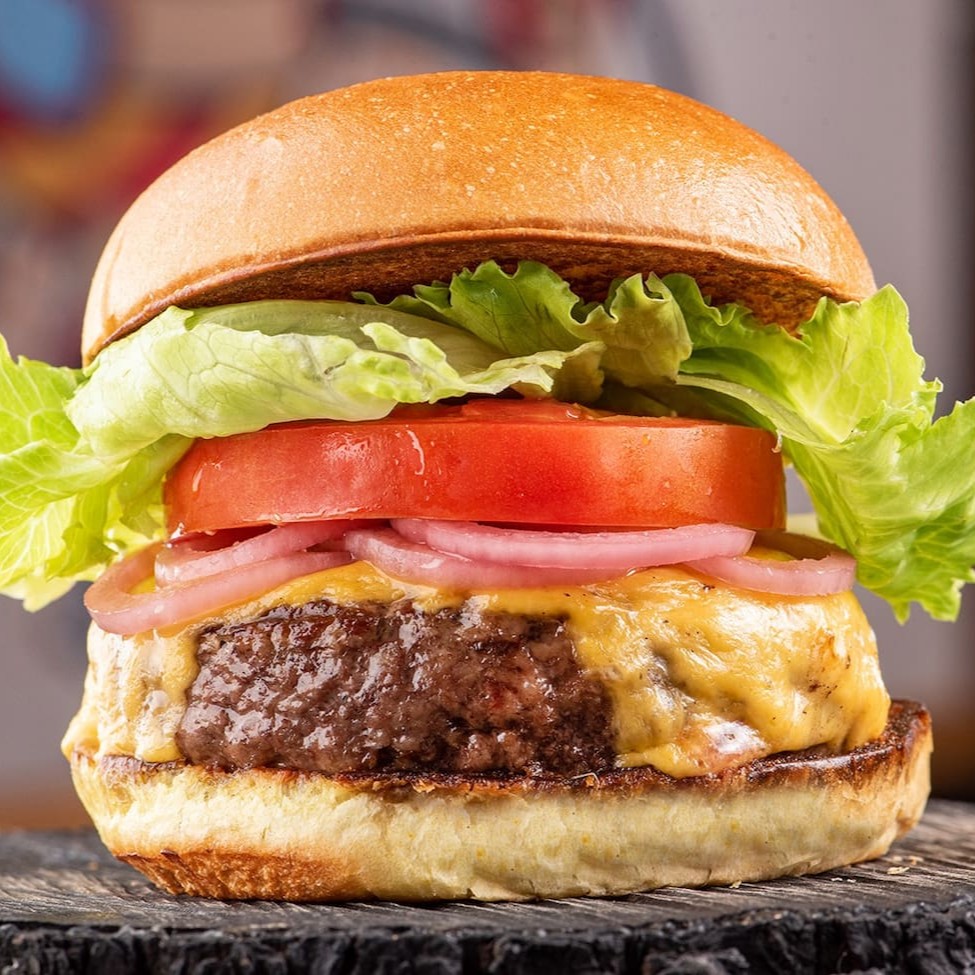 Pão brioche, burger 160g, queijo prato, cebola roxa, tomate e alface.