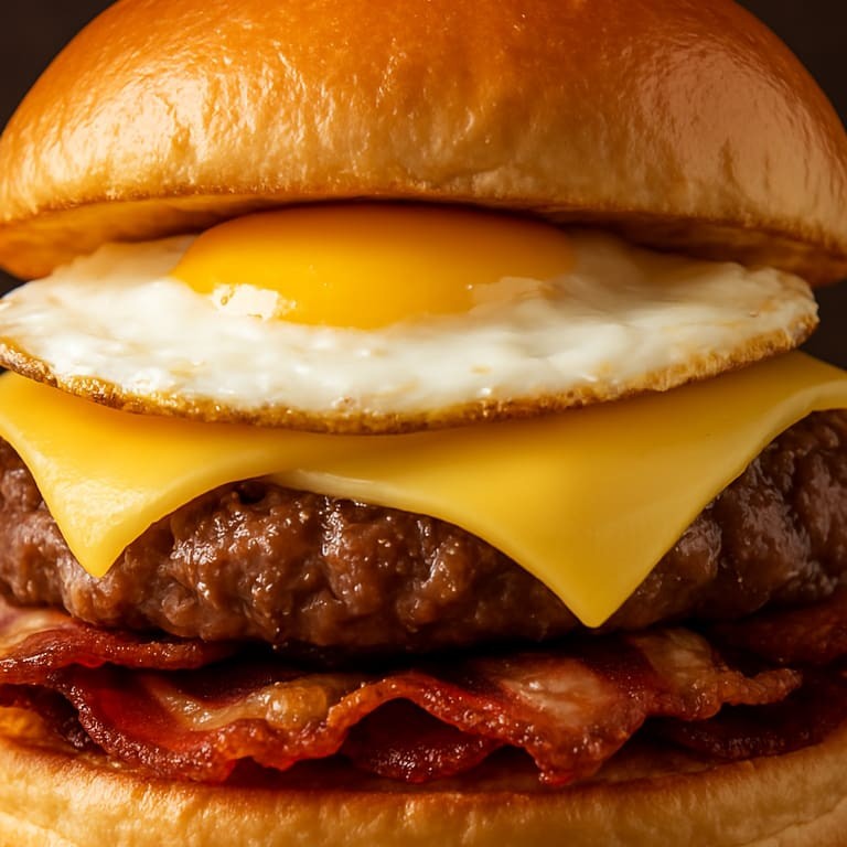 Pão brioche, ovo, bacon, burguer 160g e queijo prato.