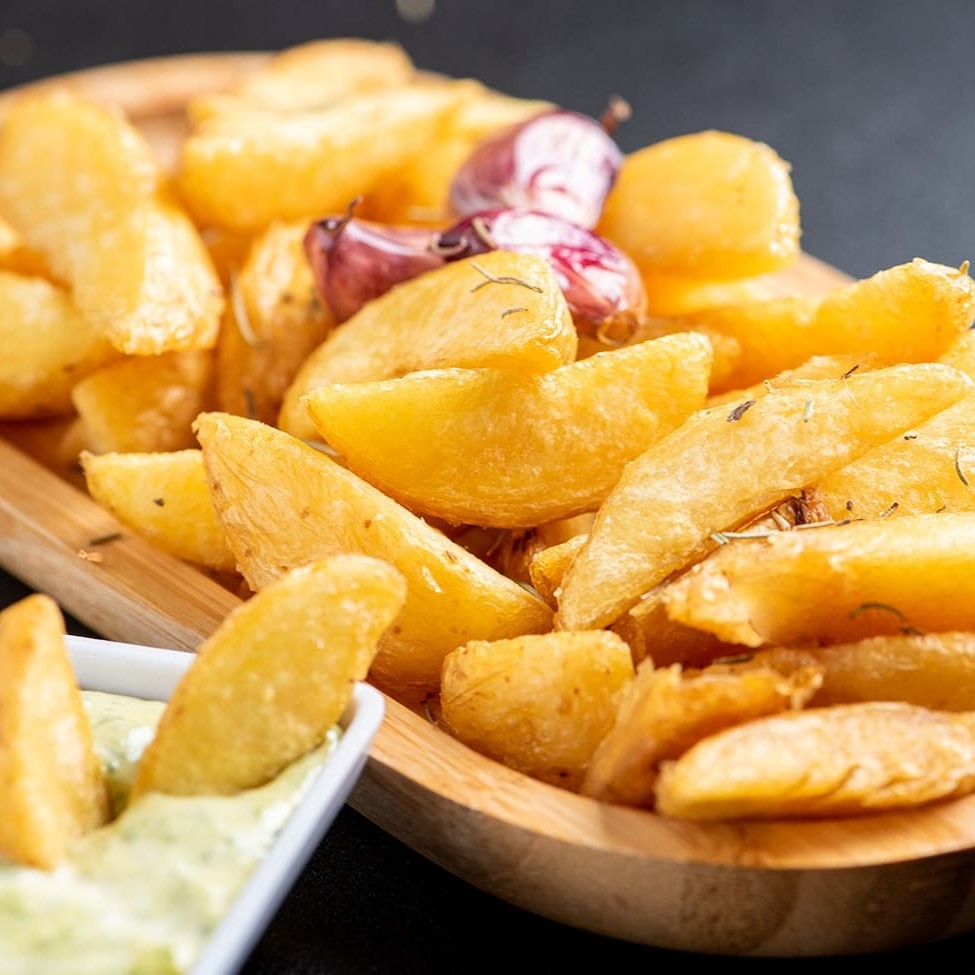 A Batata Rústica é uma porção preparada com batatas de corte caseiro, mais grossas e mantendo a casca para um sabor autêntico. Elas são meticulosamente fritas com dentes de alho frescos para um toque aromático, e finalizadas com um toque de alecrim, conferindo um sabor rústico e encantador. Peso se refere ao produto in natura (congelado)