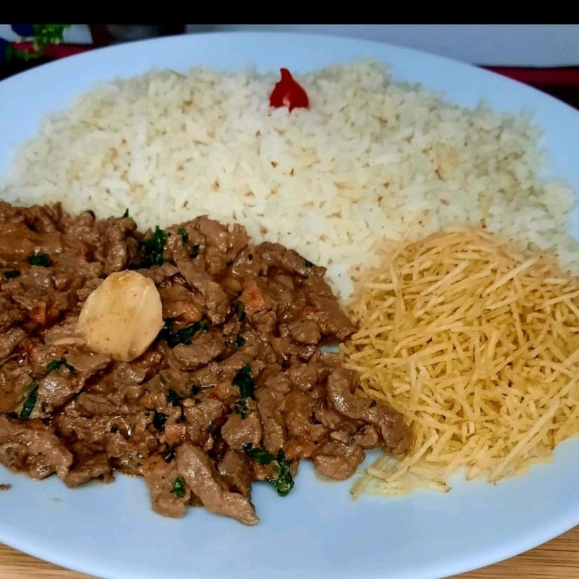 Apresentamos nosso 'Strogonoff Bovino', um dos destaques dos 'Pratos da Casa'. Com uma generosa porção de 250g, este prato é preparado com uma carne de primeira qualidade, cuidadosamente selecionada e cortada em tiras macias que se desmancham na boca. O molho é suculento e cheio de sabor, proporcionando uma experiência gastronômica inigualável. Para completar, acompanha 300g de um arroz branco leve e soltinho, perfeitamente cozido, e ainda 30g de batata palha crocante. Uma combinação perfeita para um almoço ou jantar memorável!