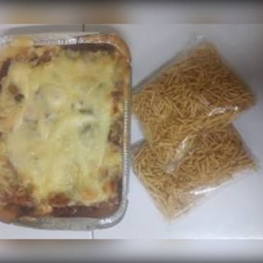 Lasanha com sabor de presunto e mussarela com molho bolonhesa