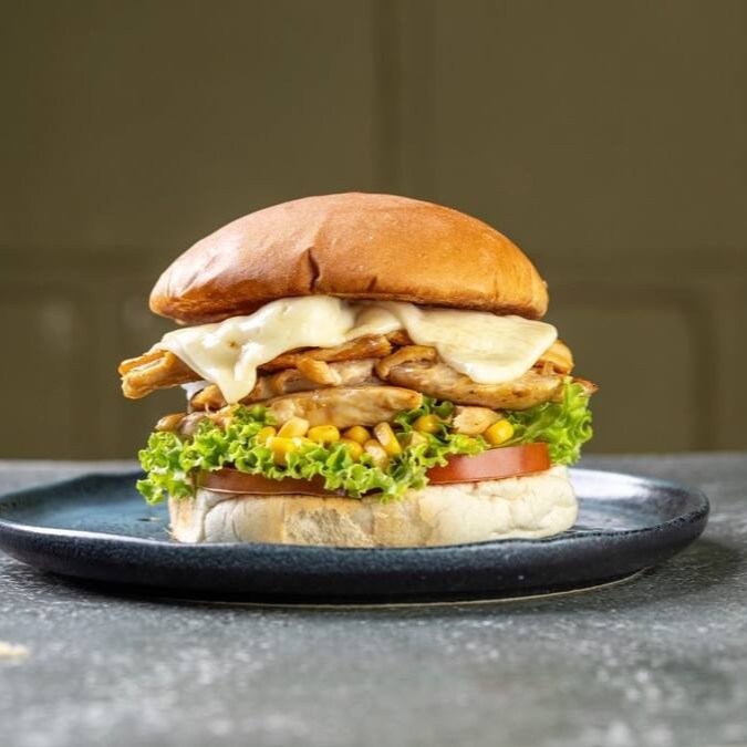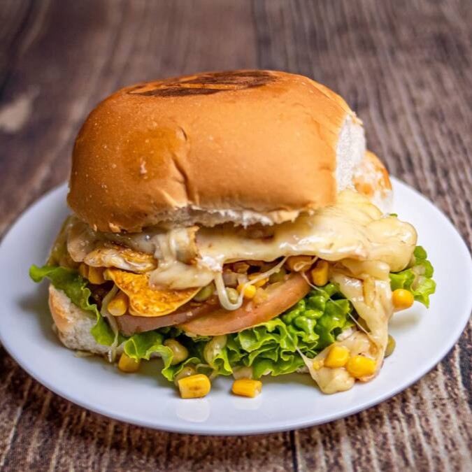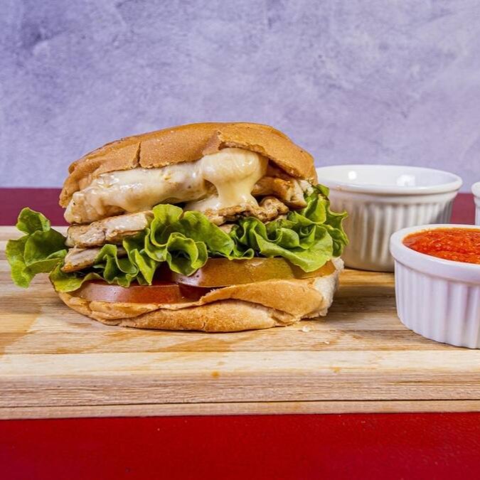 Filé de frango, ovo, mussarela, alface, tomate, milho, catchup e maionese