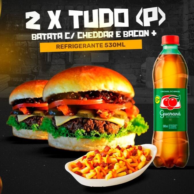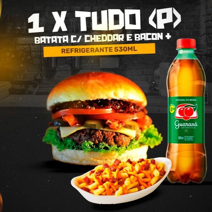 X-Tudo Pequeno guarana 350 ml Batata c/ Cheddar e Bacon