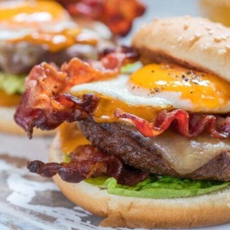 03 Hamburguer, bacon, presunto, mussarela, 2 ovos, Catupiry, alface, tomate, milho, catchup e maionese
