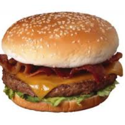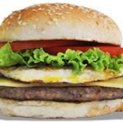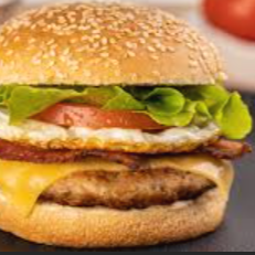PÃO BRIOCHE, HAMBURGUER BOVINO 200G, OVO, BAON, ALFACE, TOMATE E QUEIJO