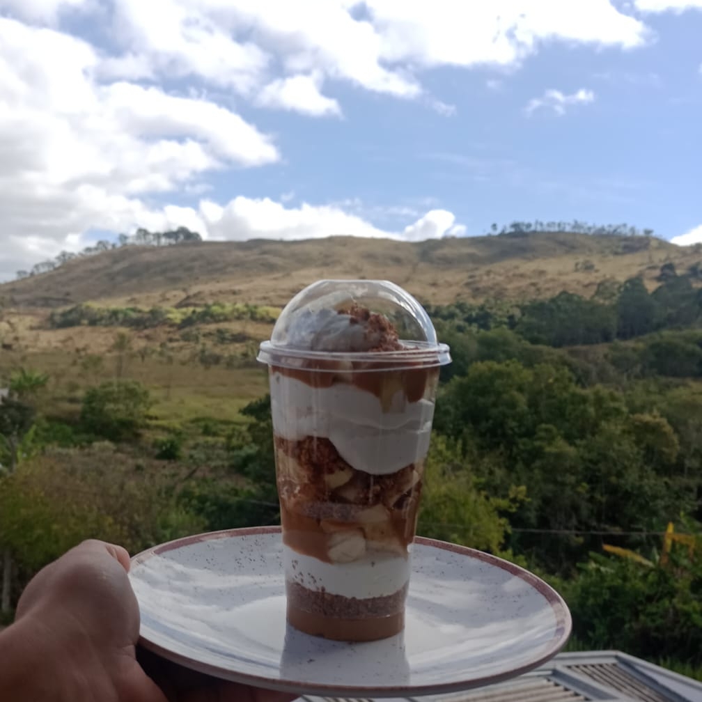 O sucesso da confeitaria agora no copo! Bananas maduras, doce de leite artesanal, chantilly e sobre uma base crocante de biscoito. Finalizado com chocolate e um toque de canela.